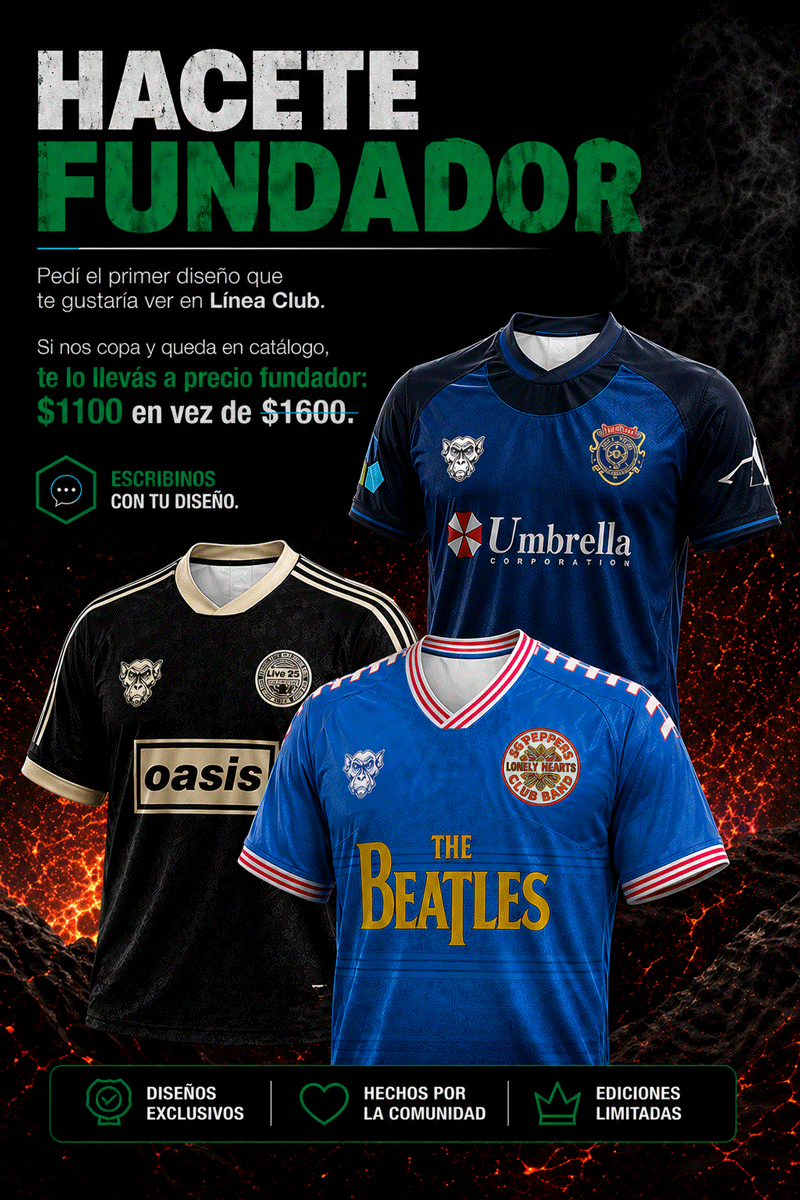 Si nos proponés una idea para una camiseta Línea Club y esa idea queda en catálogo, accedés al precio fundador de $1100.