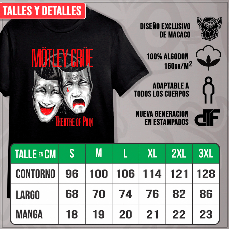 Sé el primero en valorar “Remera «Mötley Crüe: Theatre Of Pain»”