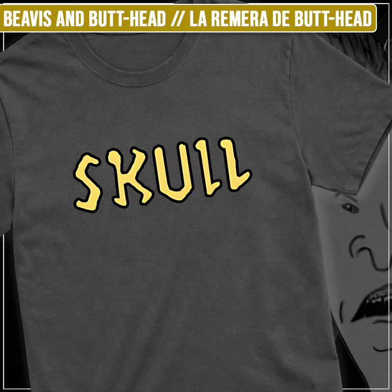 #BeavisAndButthead #Skull #ButtHead #Noventas #MTV #Cartoons #RetroTV #CulturaPop #RemerasGeek #MinimalDesign #CultTV #RemerasRetro #MacacoPilchas #MacacoFigurasInnecesarias #Remeras #Playeras