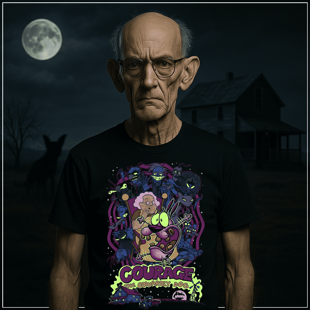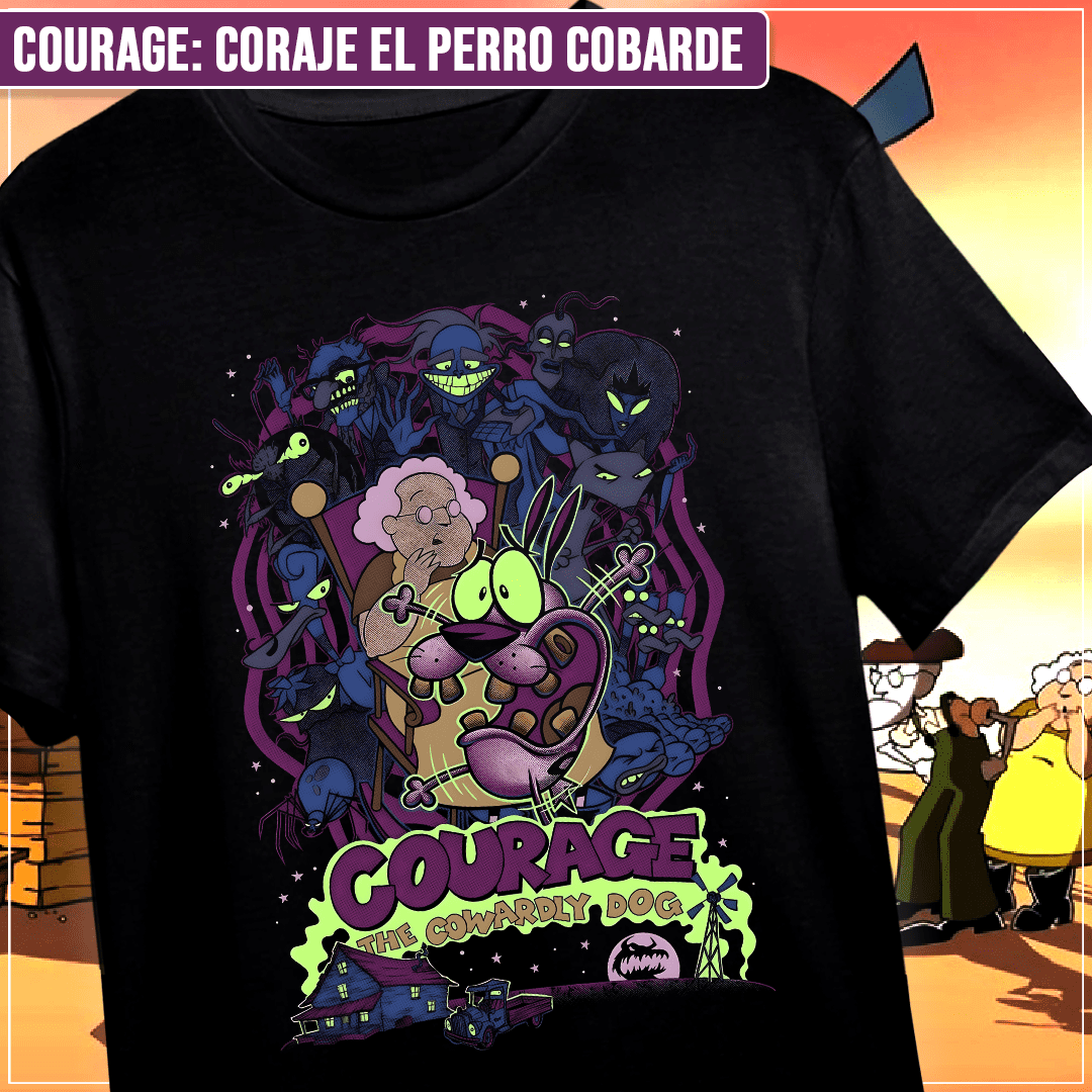 🐾 Courage, el perro más cobarde (y valiente), grita en colores desde esta remera.