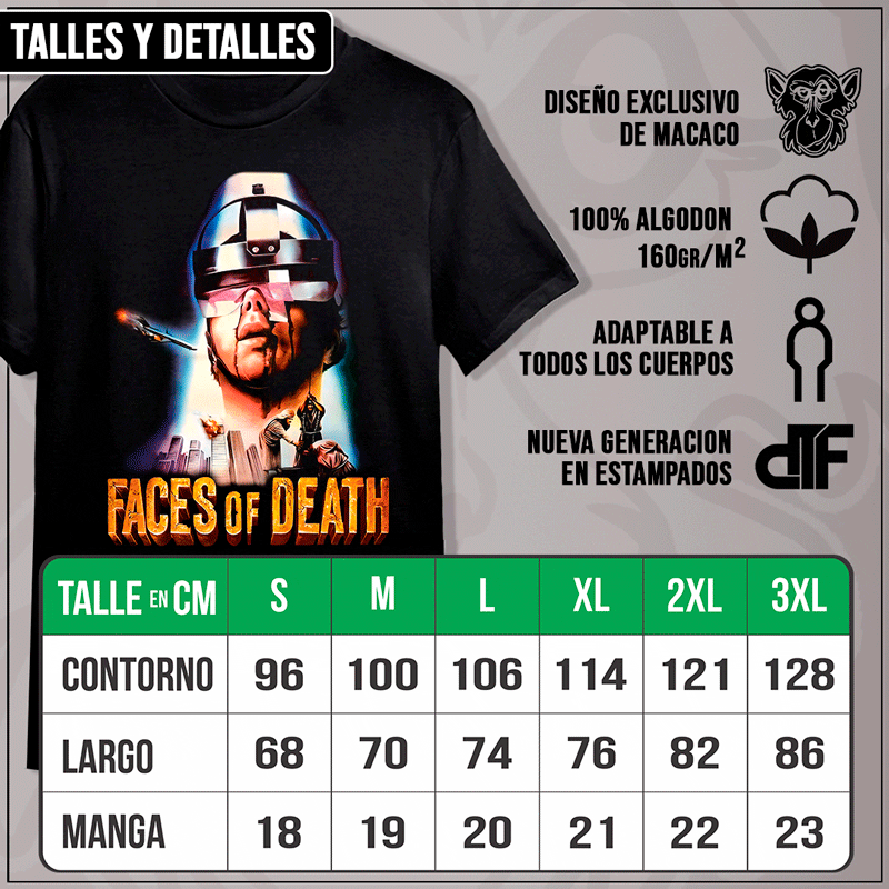 Sé el primero en valorar “Remera «Faces Of Death: Rostros de la muerte»”