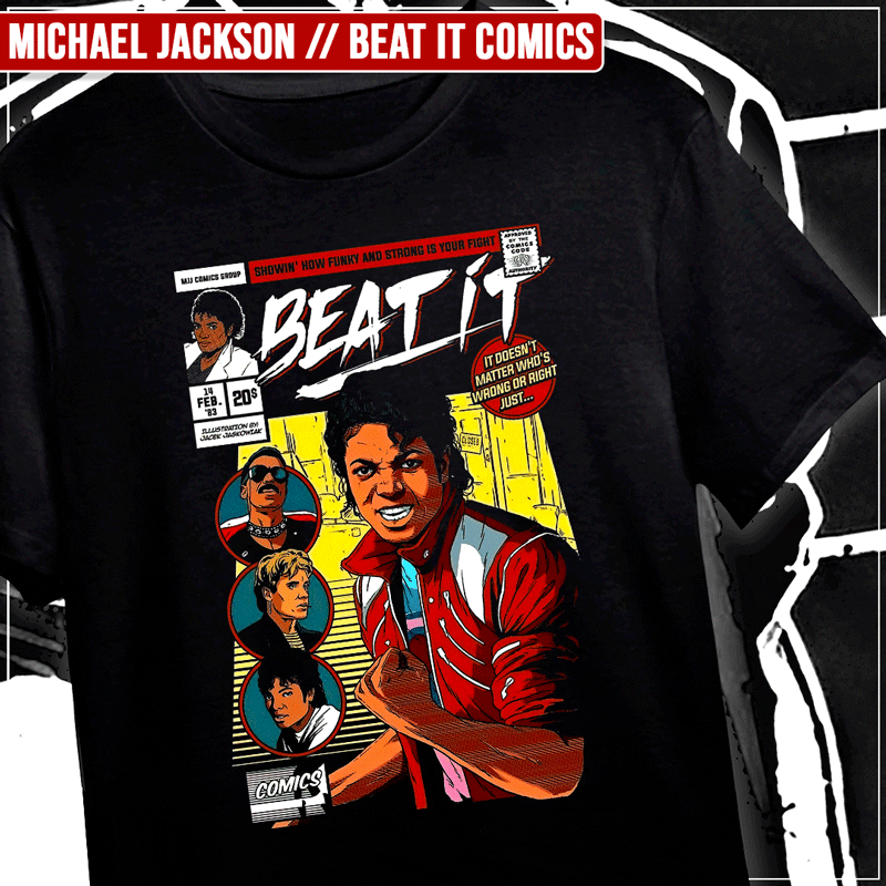 #MichaelJackson #BeatIt #KingOfPop #ReyDelPop #ComicArt #DiseñoOchentero #PopLegend #DiseñoMusical #RemeraNegra #AficheRetro #CulturaPop #ViñetaPop #RetroComics #JacksonStyle #MacacoUy #Remeras #Playeras #MacacoPilchas #MacacoFigurasInnecesarias